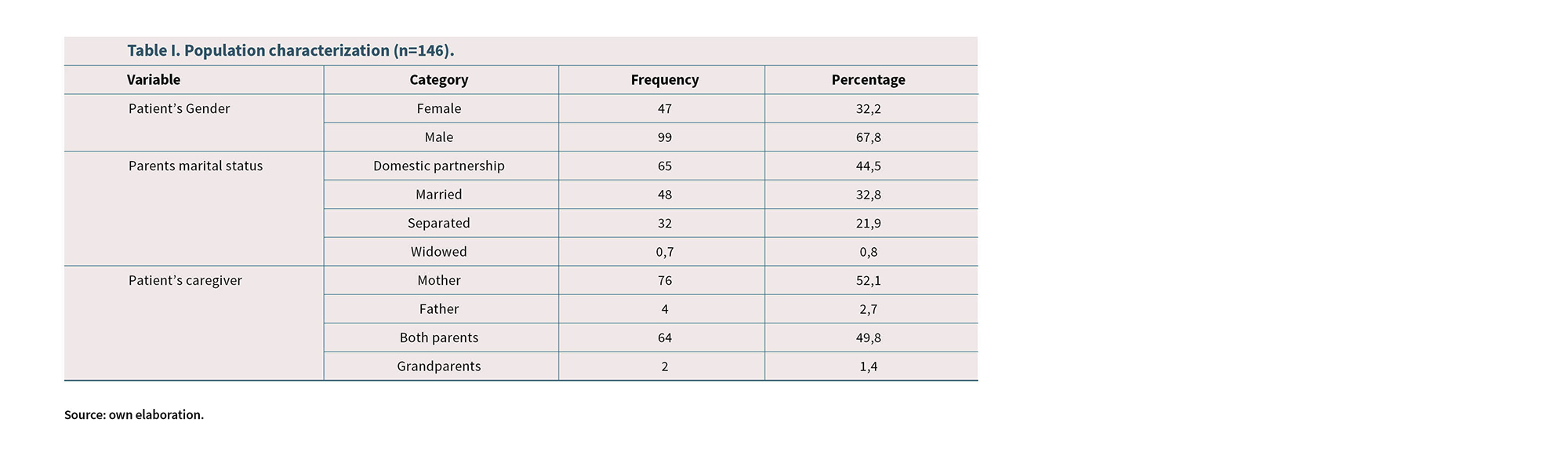 A total of 146 caregivers met the inclusion criteria at the time of admission to the short-stay surgical center. Data for the study variables were obtained through the three questionnaires.