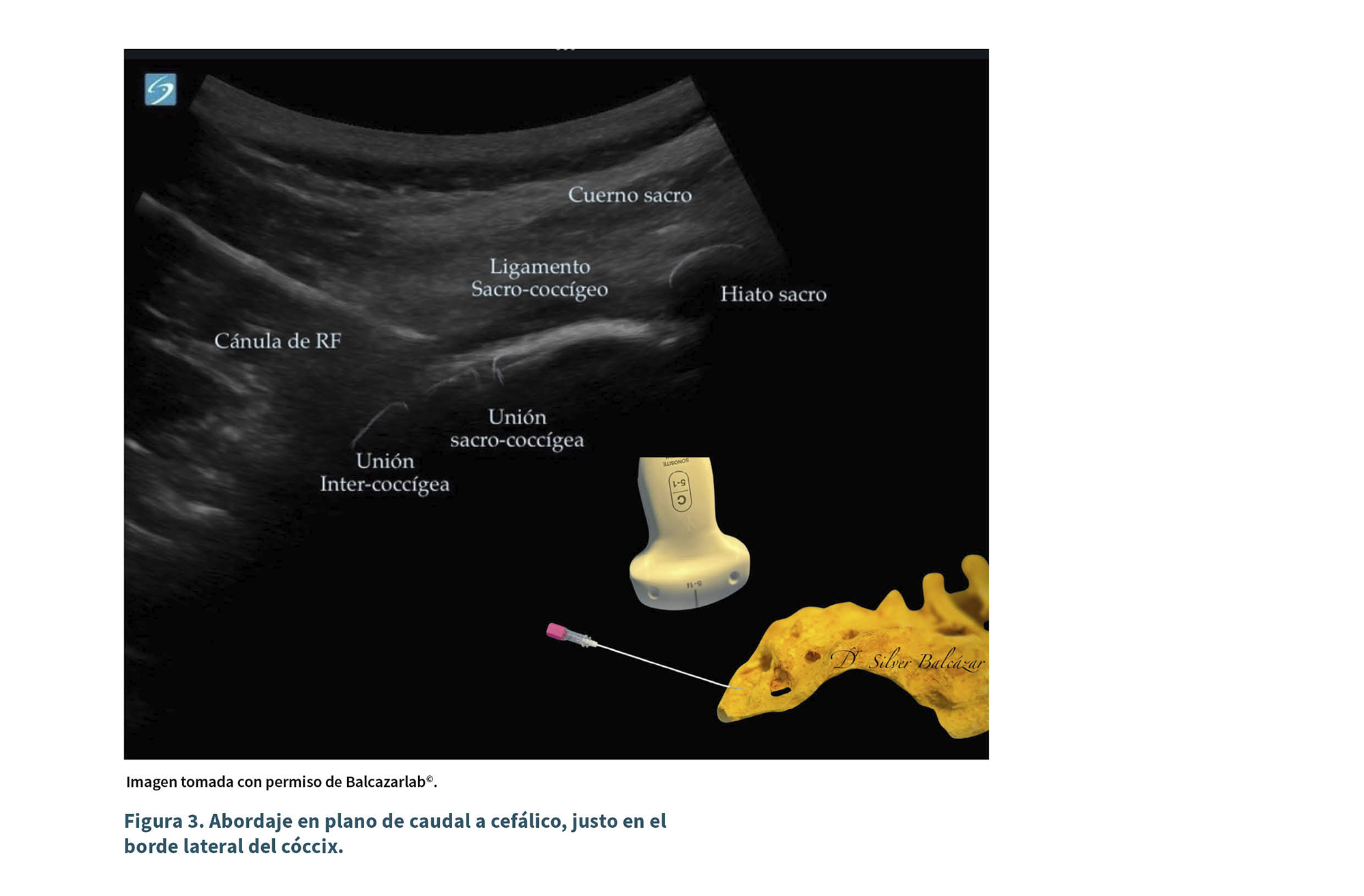 La radiofrecuencia dirigida a las fibras aferentes sensoriales dorsales terminales ha demostrado ser una modalidad de tratamiento eficaz para patologías del esqueleto axial, como el dolor cervical crónico, la artropatía facetogénica y la disfunción sacroilíaca. A pesar de su éxito, existen pocos métodos específicos de ablación por radiofrecuencia (RFA) bien descritos con un abordaje dorsal dirigido a la articulación sacroilíaca (SIJ) o a los segmentos coccígeos distales para el tratamiento de la coccigodinia (10).