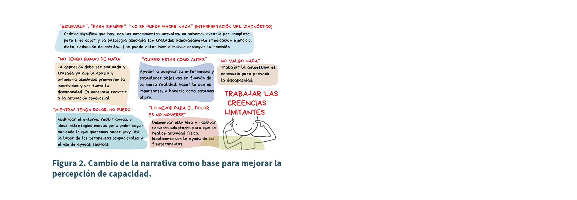 Trabajar las creencias erróneas limitantes acerca de lo que se puede o no hacer con dolor crónico (12).